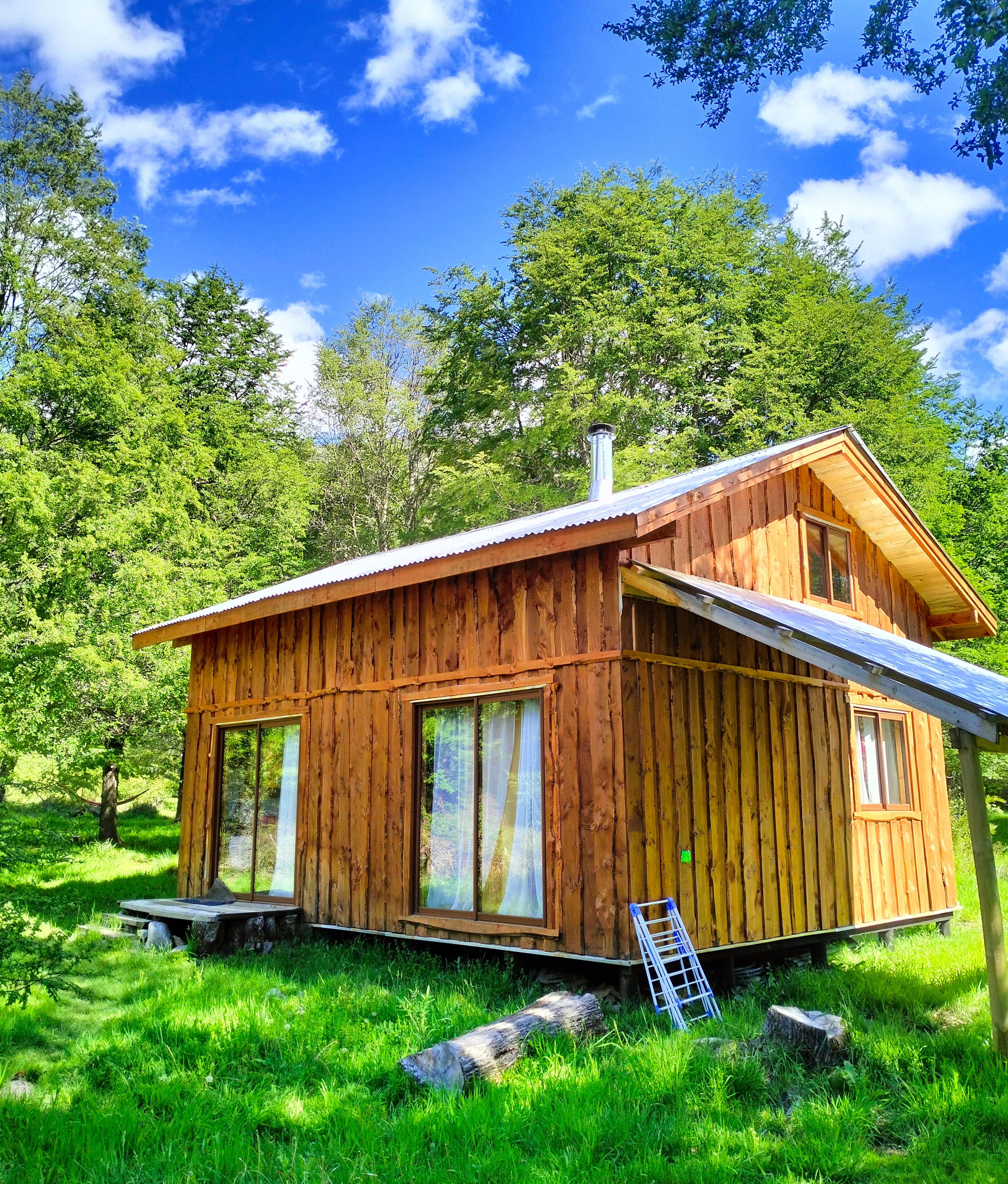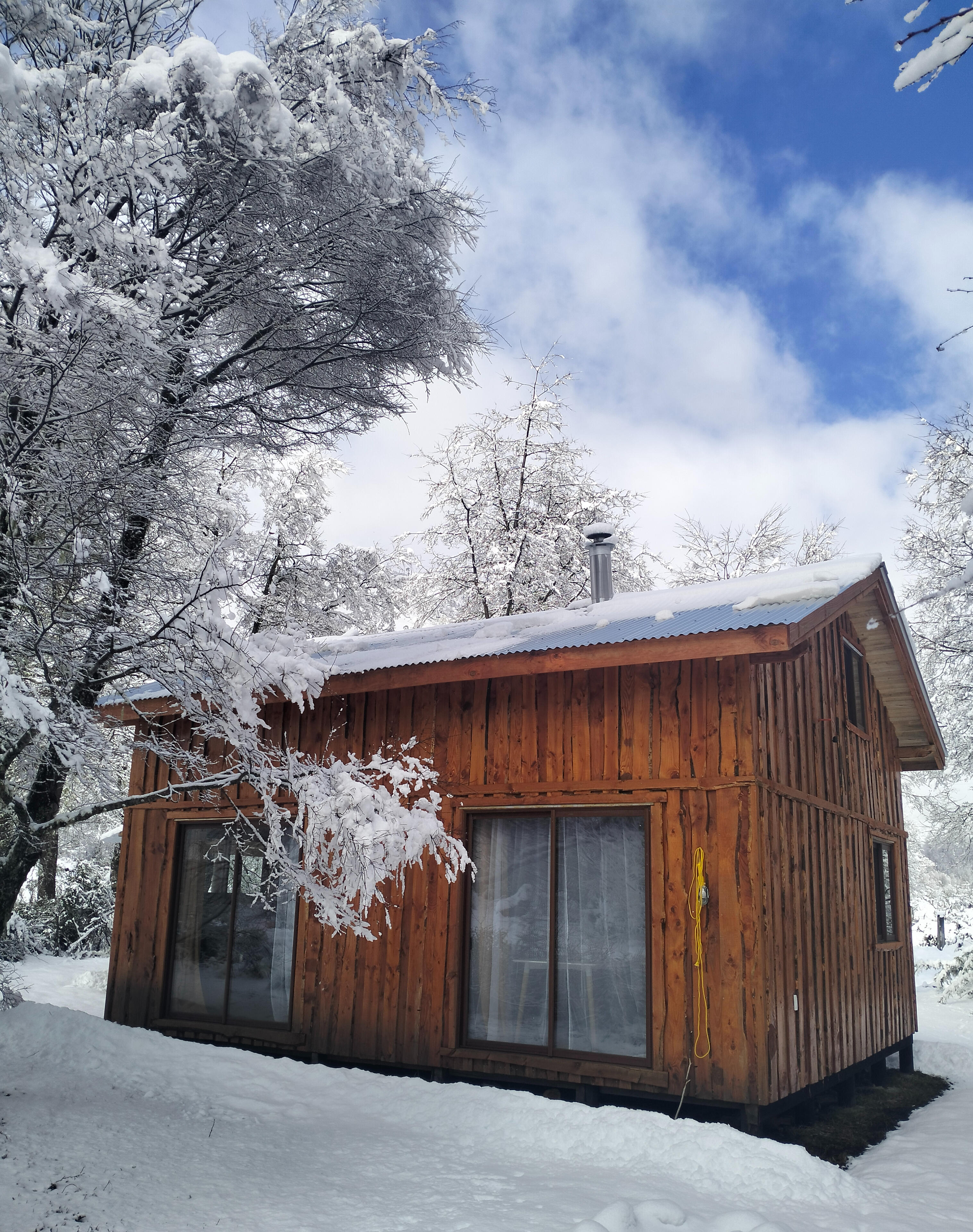 Cocina equipada, Baño con agua caliente, Estufa a leña, Internet satelital.