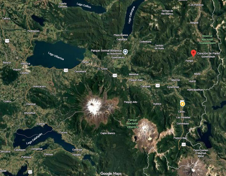 https://maps.app.goo.gl/wmcPgDreCqp2KBNs6• Corazón de Panki se encuentra en el Valle de Panqui, en la comuna de Curarrehue, al sur de Chile, a pocos kilómetros de Pucón, a los pies de la cordillera de los Andes.• Estamos en el sur de la Araucanía, zona de Pucón hacia la cordillera por Camino Internacional, ruta 199, a una 1 hora de ruta desde Pucón y 30 minutos desde Curarrehue• Estamos a 2h50 de Temuco por ruta• Estamos a 3h30 de Valdivia por ruta